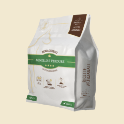 MINI. Ricetta Artigianale con carne fresca di agnello, fonte di proteine digeribile e ricca di nutrienti. Le crocchette sono nel formato MINI, ideali per cani di piccola taglia o con difficoltà nella masticazione. Alimento completo.