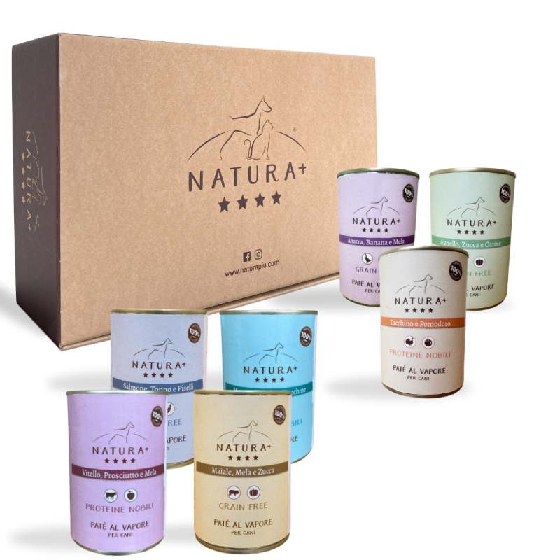 Il Kit perfetto per far provare al tuo cane le Ricette Artigianali Natura+. Un’accurata selezione di cibo umido, cucinato con ingredienti semplici e naturali. Ideale per chi cerca qualità e gusto in un pasto completo o come delizioso accompagnamento alle crocchette.