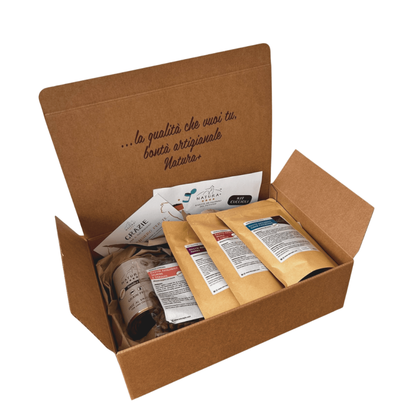 Il Kit perfetto che abbina Crocchette e Paté! Fai provare al tuo Cucciolo i vari gusti disponibili e scopri il suo preferito: al prossimo ordine non avrai dubbi su cosa scegliere!