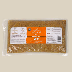 Pappa Casalinga e Artigianale con maiale e carote. Ricetta bilanciata e completa. Comode buste da 400g (n.10 pezzi) conservabili in dispensa. Ideale come pasto completo o come aggiunta sopra le crocchette.