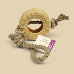 La combinazione di gomma naturale e corda in canapa offre doppia resistenza. Ideale per morsi vigorosi, gioco interattivo e pulizia dentale naturale.
